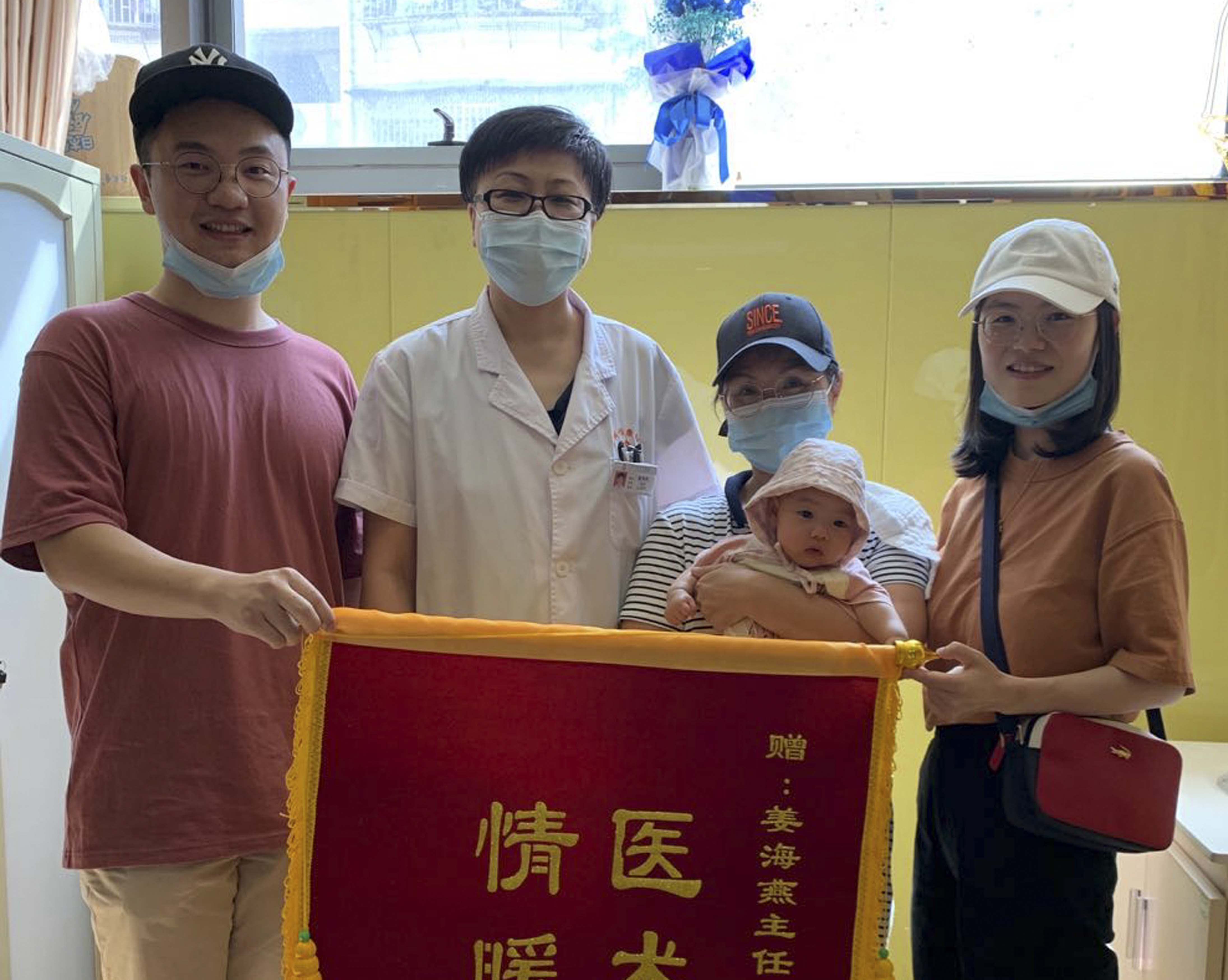 现宝宝已经出生4个月了,一家四口送来锦旗“医术精湛,情暖人心”感谢姜主任。