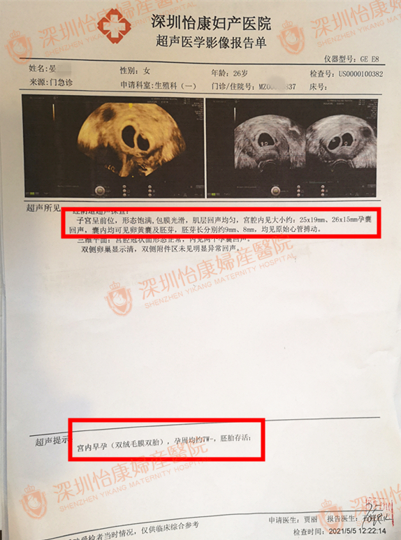 怡康治疗方案:宫腹腔镜微创手术、监测促排卵,怀孕7周,双胞胎