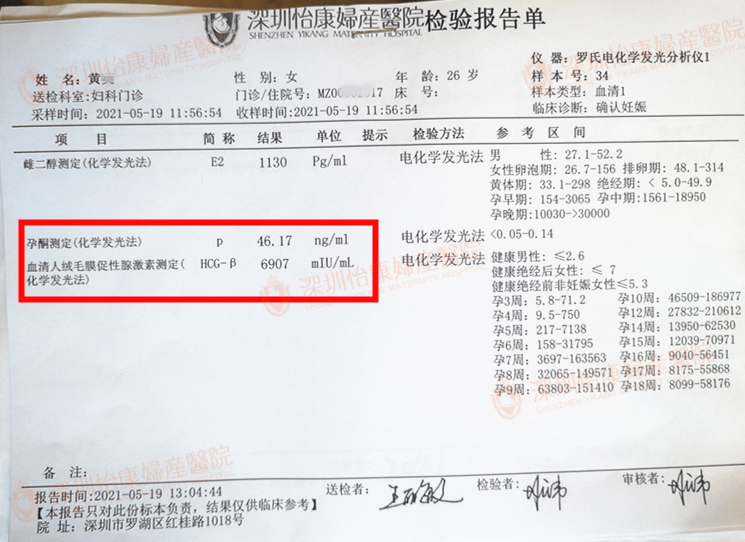 大宝3岁时,黄女士和爱人备孕二胎1年没怀,一个月来两次月经,再次找到我院王主任助孕,中西医药物治疗3个月,心急的黄女士想放弃,王主任觉得经过前期的调理,她激素的比例、水平基本上比较正常,再坚持一下,怀孕的几率非常高,在主任的鼓励下,积极配合促排卵试孕,顺利测出双红杠,黄女士开心极了,来院检查报喜,二胎宝宝各项数值都很正常,恭喜恭喜!