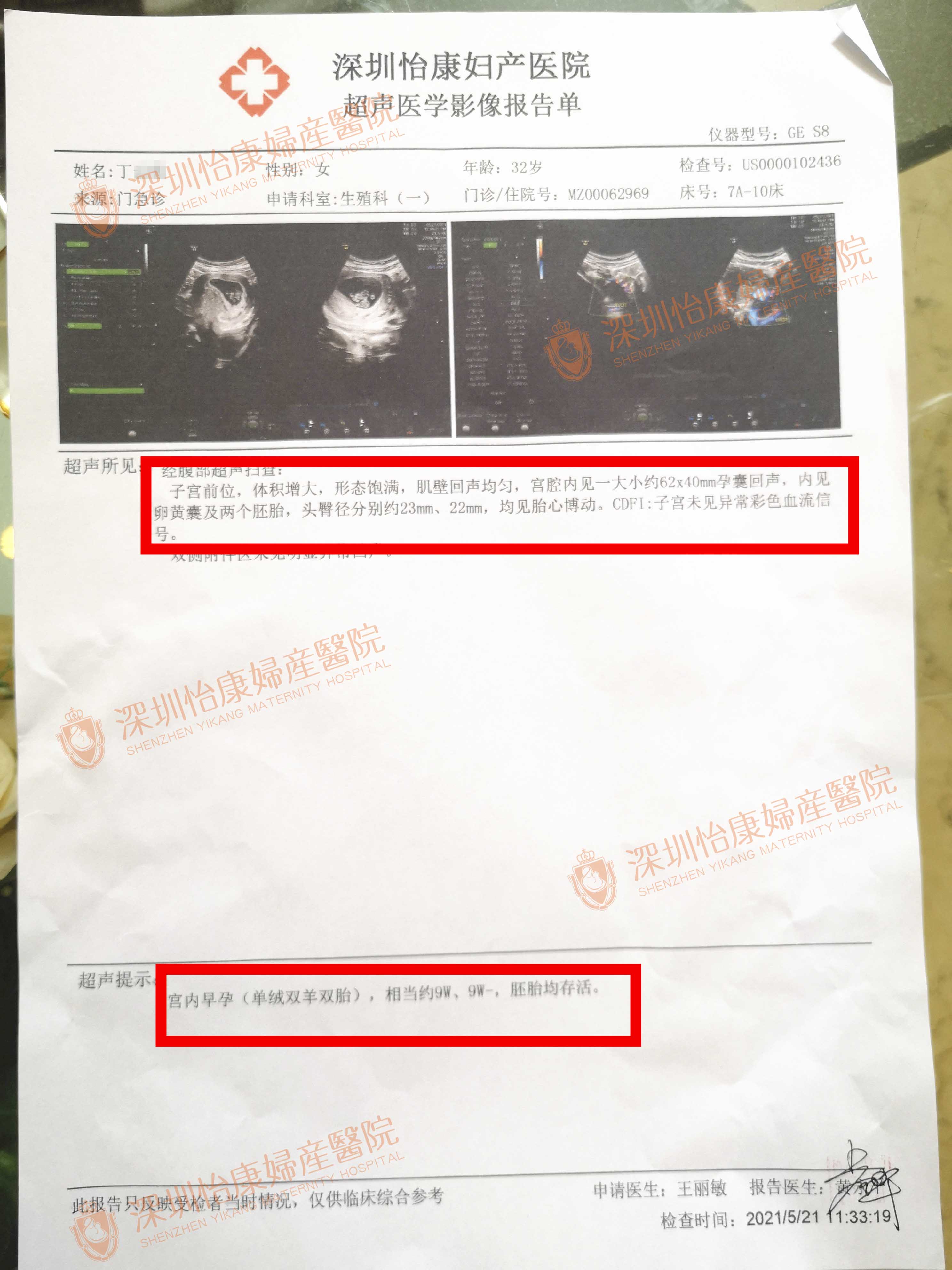 报喜时间:2021年5月21日,怀孕9周,双胞胎