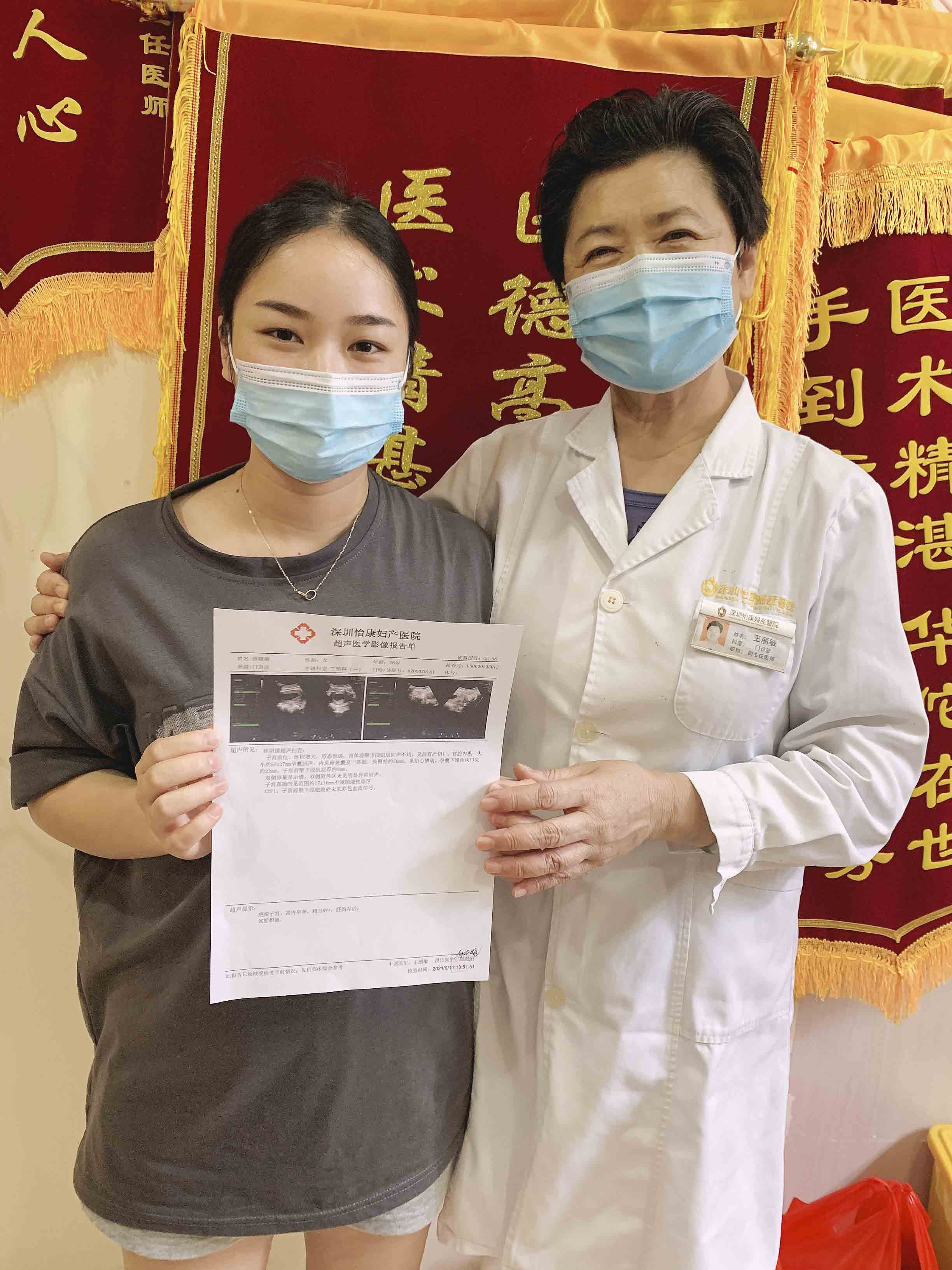 今年3月来院就诊,现已查出怀孕8周+,胎儿发育很好。薛女士开心地抱住王丽敏主任,感谢王主任对她的贴心关怀和精心治疗,帮助她快速怀上二胎宝宝。