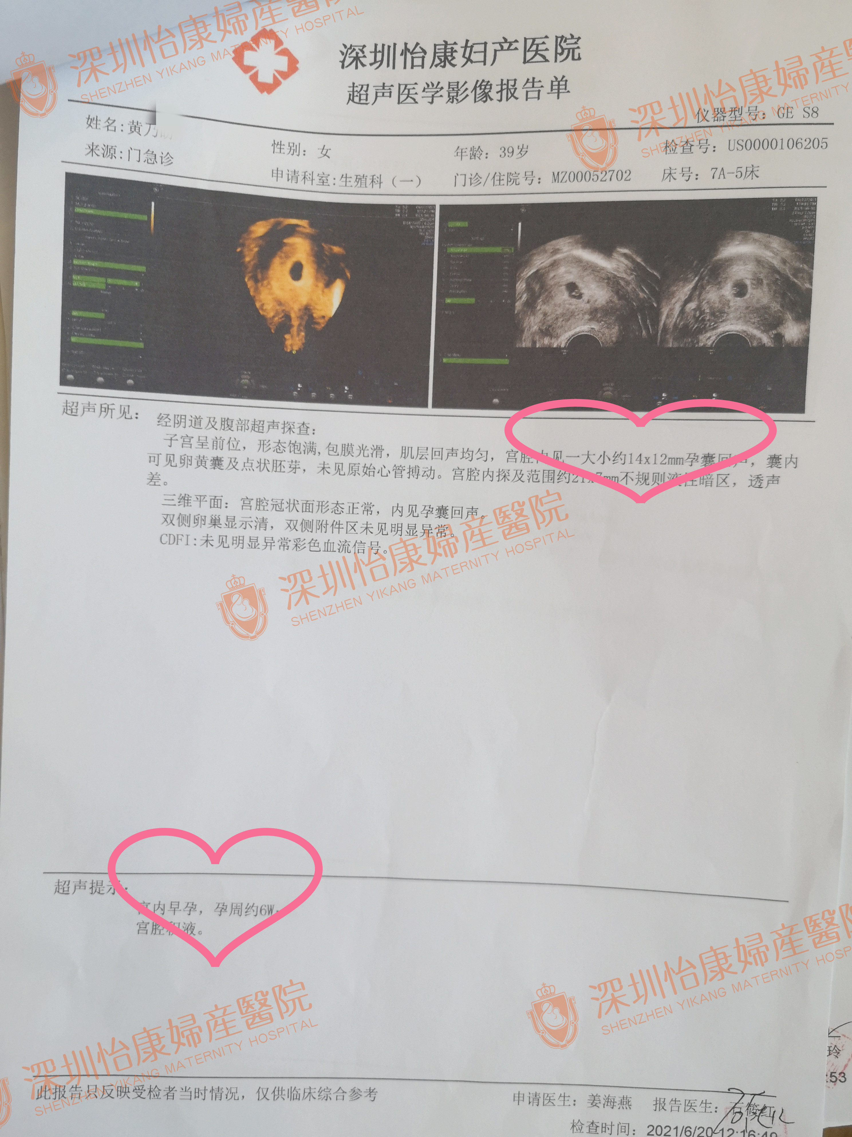 来院后,分别在姜海燕主任和李海勇处就诊,系统检查后,女方进行了COOK导丝疏通输卵管扭曲粘连,药物调理卵巢功能减退,男方中西药调理弱精子症、精液液化不全。因为信任,夫妻俩几乎每周都从公明来怡康复查、治疗,很快就有了好消息,现查出怀孕6周,夫妻俩特别开心,迎来了父亲节最好的礼物。提到成功怀孕的秘诀,黄女士分享道:“早来(怡康)早怀孕!”