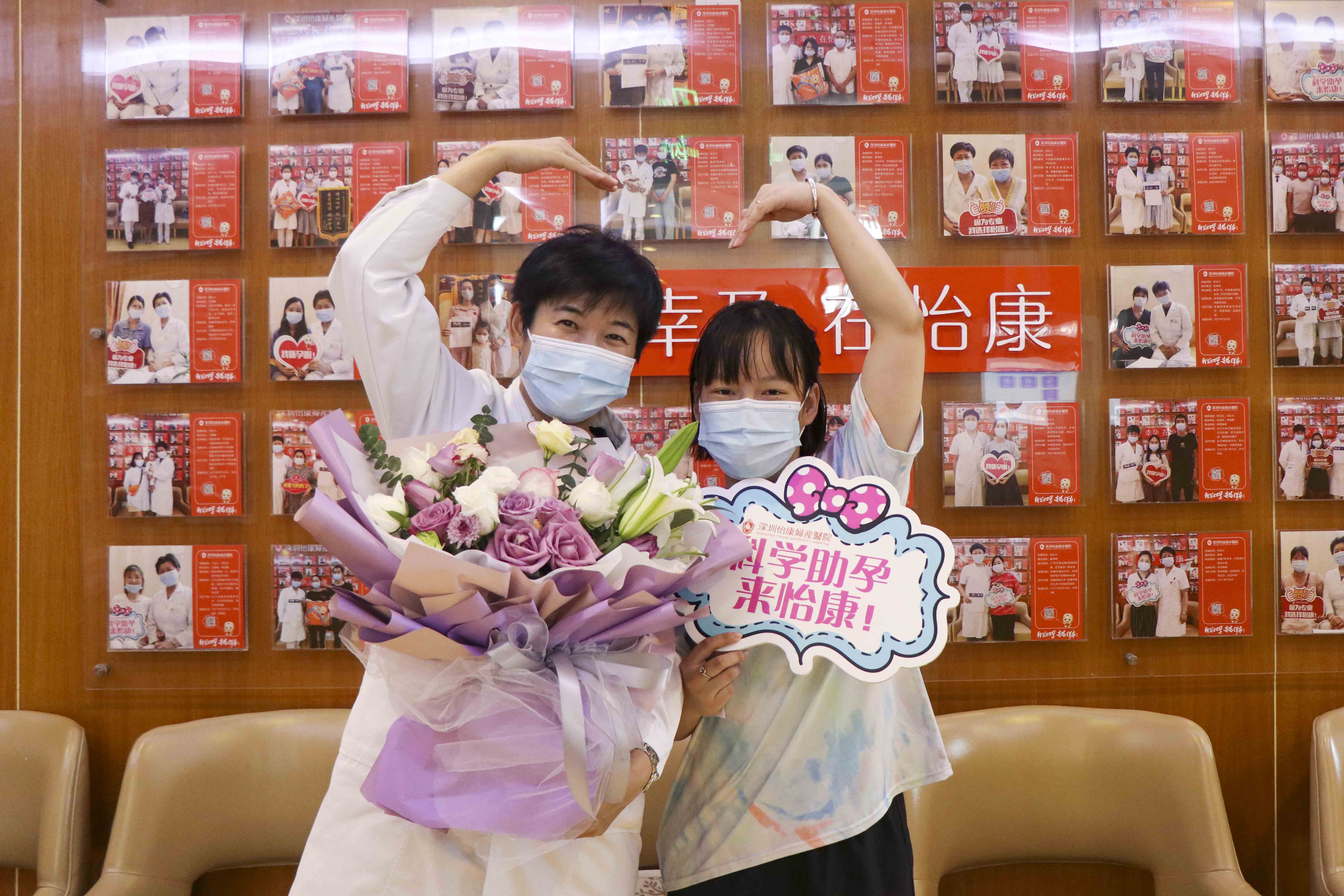 术后一个月快孕不可思议怀疑试纸出错,来院复查确认怀孕开心地送鲜花感谢主任!
