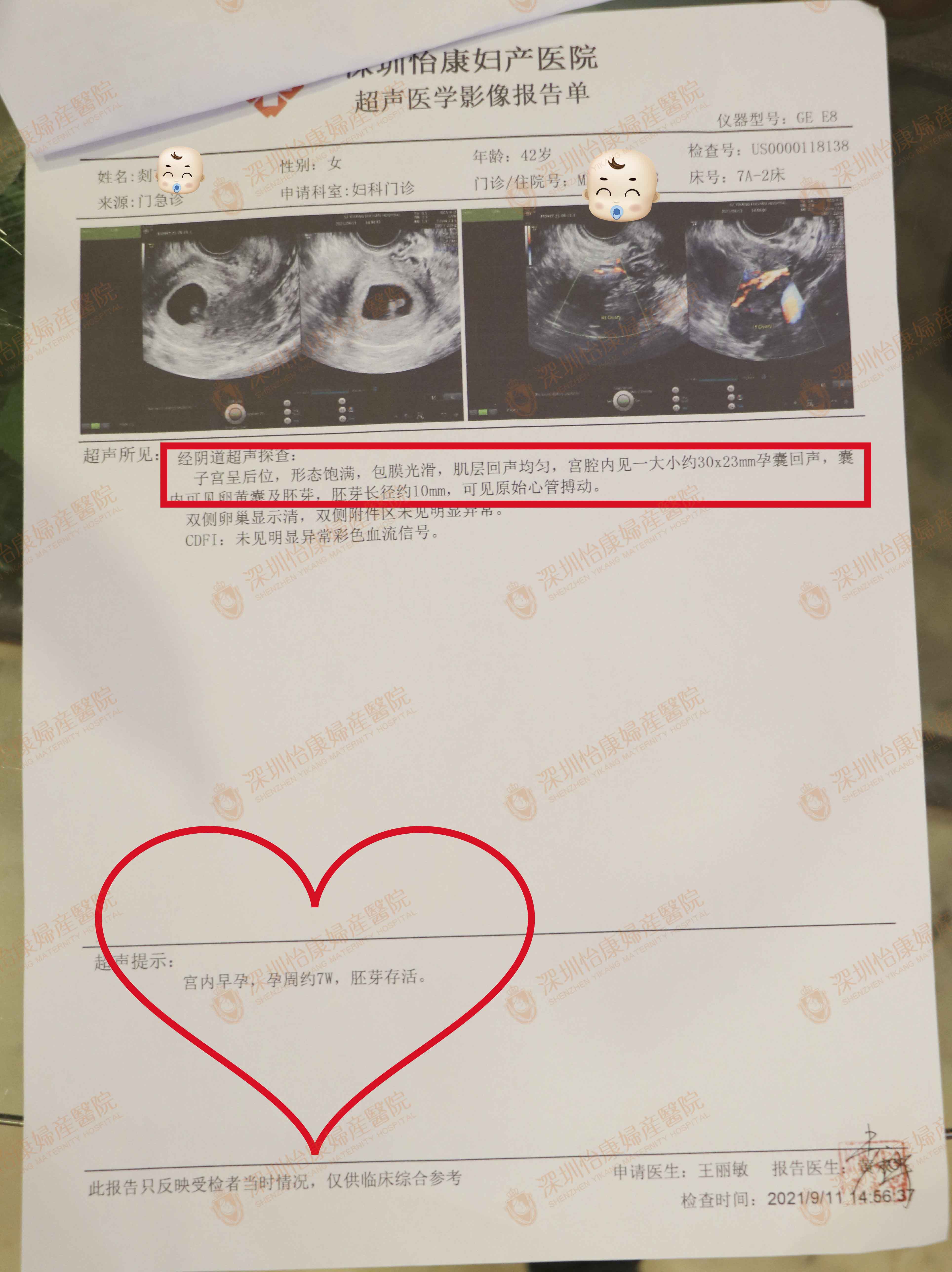 通过检查,王丽敏主任告诉她卵巢功能不好,没有卵泡,不来月经。安排了中西药特色疗法+注射,因为高龄压力大,主任非常重视对她的心理疏导。剡女士积极配合治疗方案,各项指标得到改善,终于长出了几个卵泡,促排卵指导备孕,测出双红杠那一刻她非常惊喜,来院检查,怀孕7周,宝宝发育很好,一切皆大欢喜,恭喜!