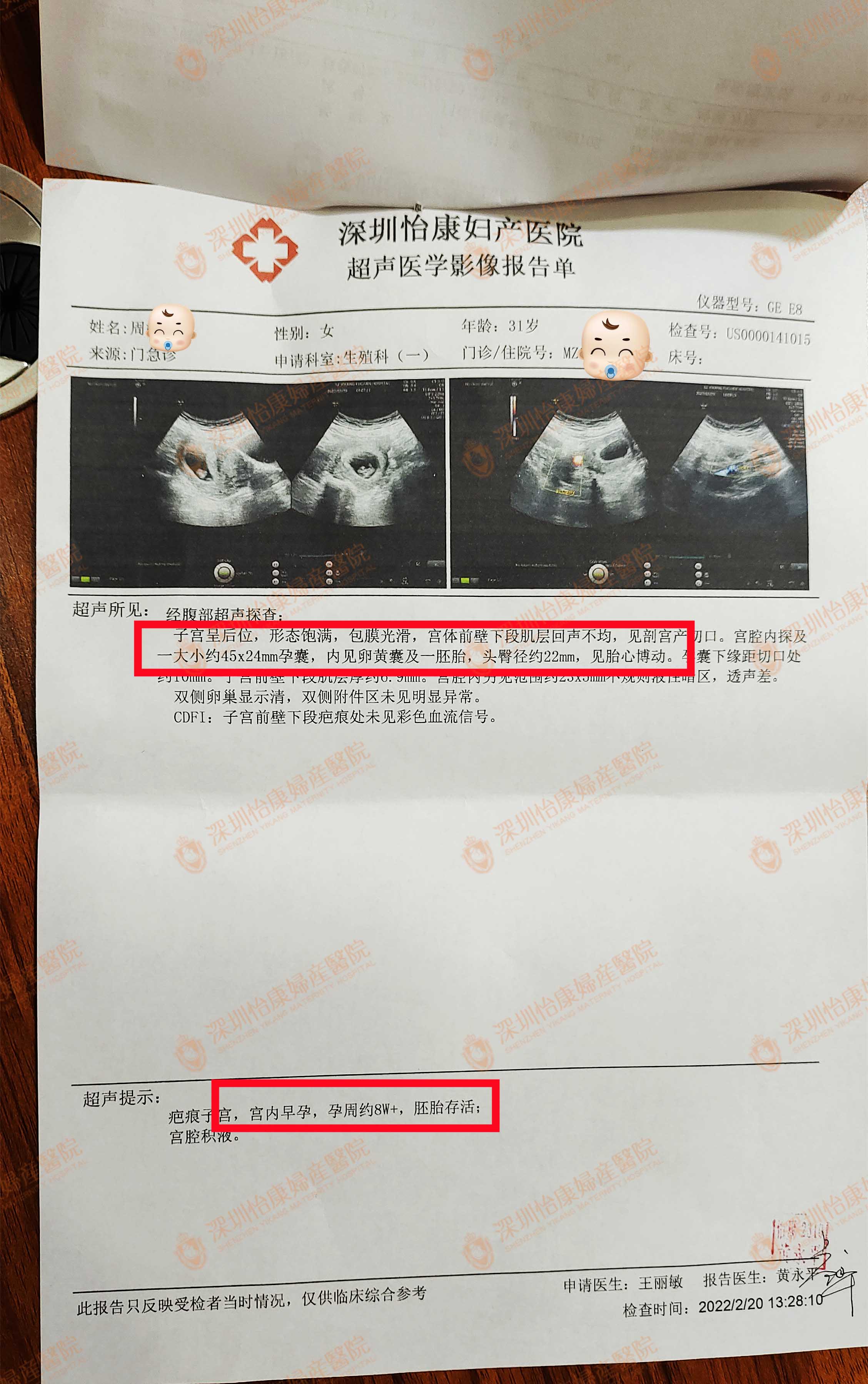 家住龙岗区的周女士,备孕二胎4次怀孕,都没有胎心,去了多家医院检查找不到病因,治疗也没效果,花了很多钱,还每次都建议她找上级医院。第4次怀孕没有胎心时她不甘心,等到8周还是没有,因稽留流产,外院让她手术。因为觉得怡康是专科医院更可靠,来院进行了手术,休养后再备孕,在王丽敏主任和李海勇主任的帮助下查准病因,夫妻同治,女方调理免疫性问题,男方调理精子活力,顺利怀孕,孕8周多了,有胎心,一切安好,恭喜!